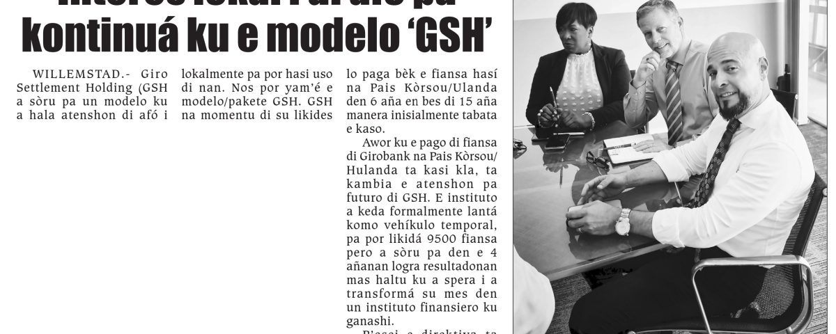 Artikel Amigoe d.d. 3 November 2025 “GSH lost Girobank-lening sneller af dan verwacht, focus nu op toekomst”